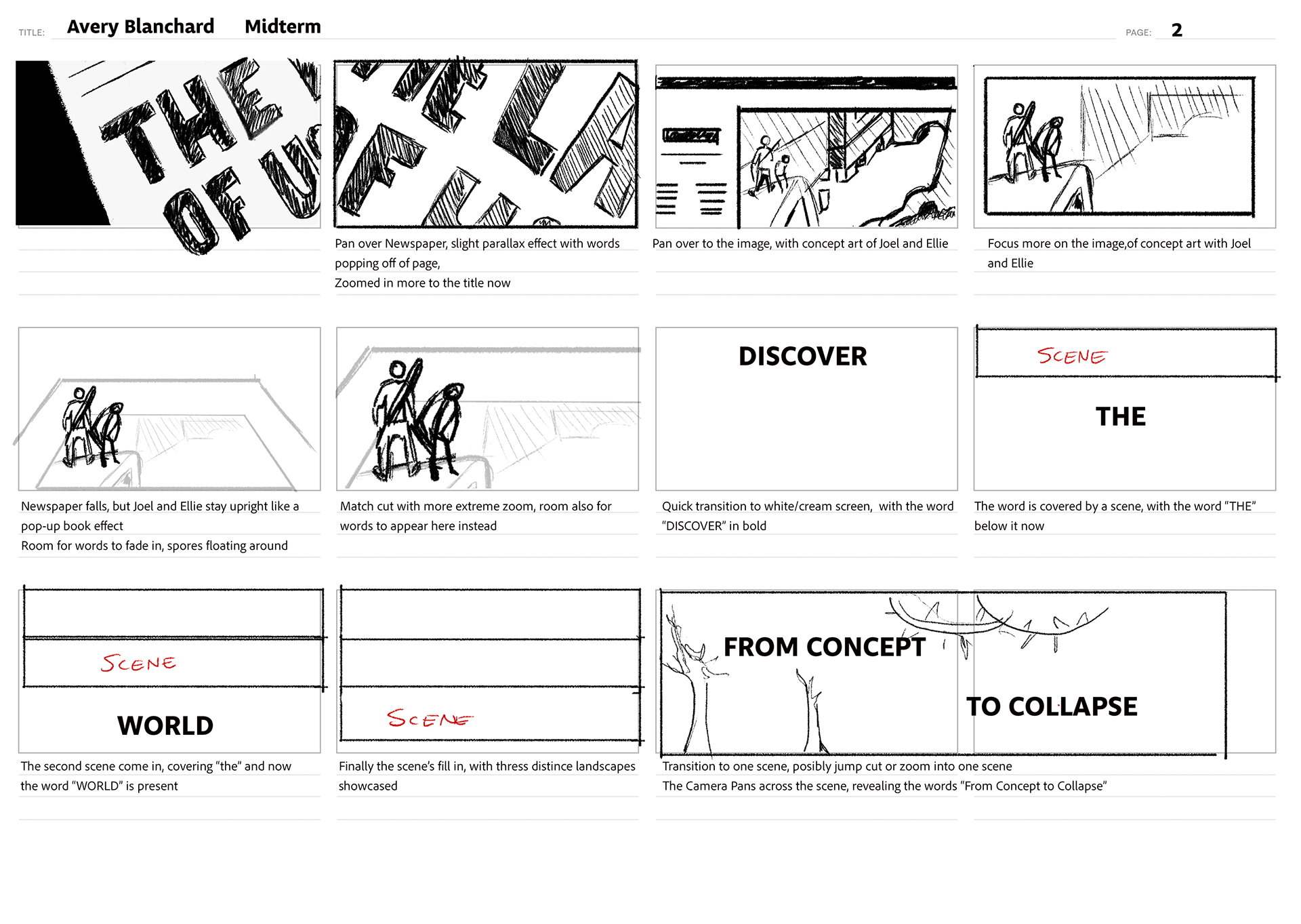 I wanted to tell this story in the most authentic way using the original concept art, sourced from the book "The Art of The Last of Us" (Dark Horse Direct, 2013). In the mix I included other forms of concept art such as 3D models to show the dimension to the game.